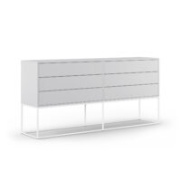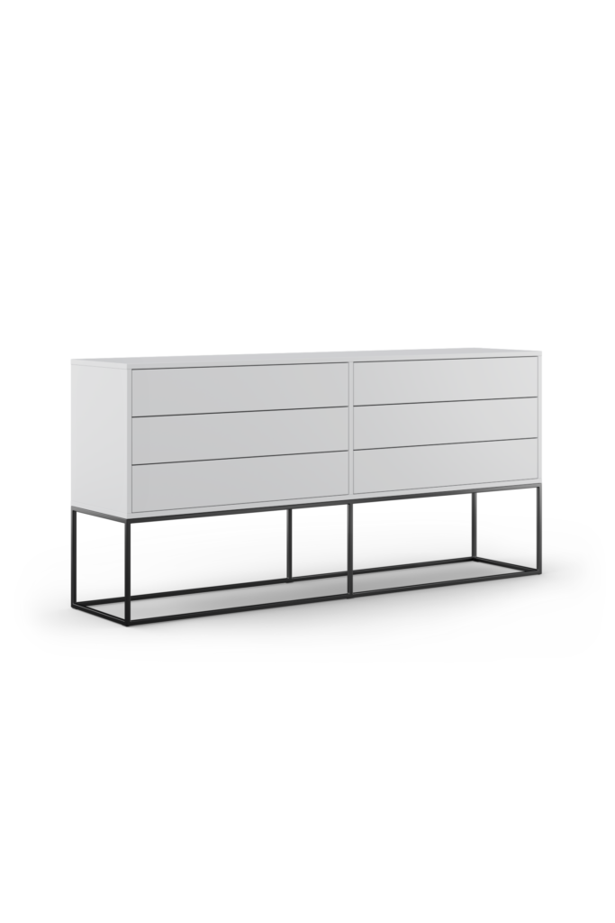 Metalowy stelaż komody w złotej, białej lub czarnej kolorystyce, nie tylko stanowi stabilną podstawę dla mebla, ale prezentuje się tak elegancko, że nie sposób nie zwrócić na niego uwagi.