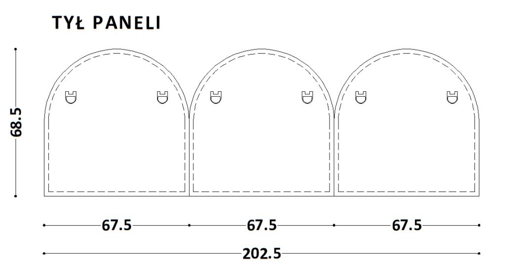 3x panel Pille, który posiada z tyłu po dwa elementy do zawieszenia na ścianie: