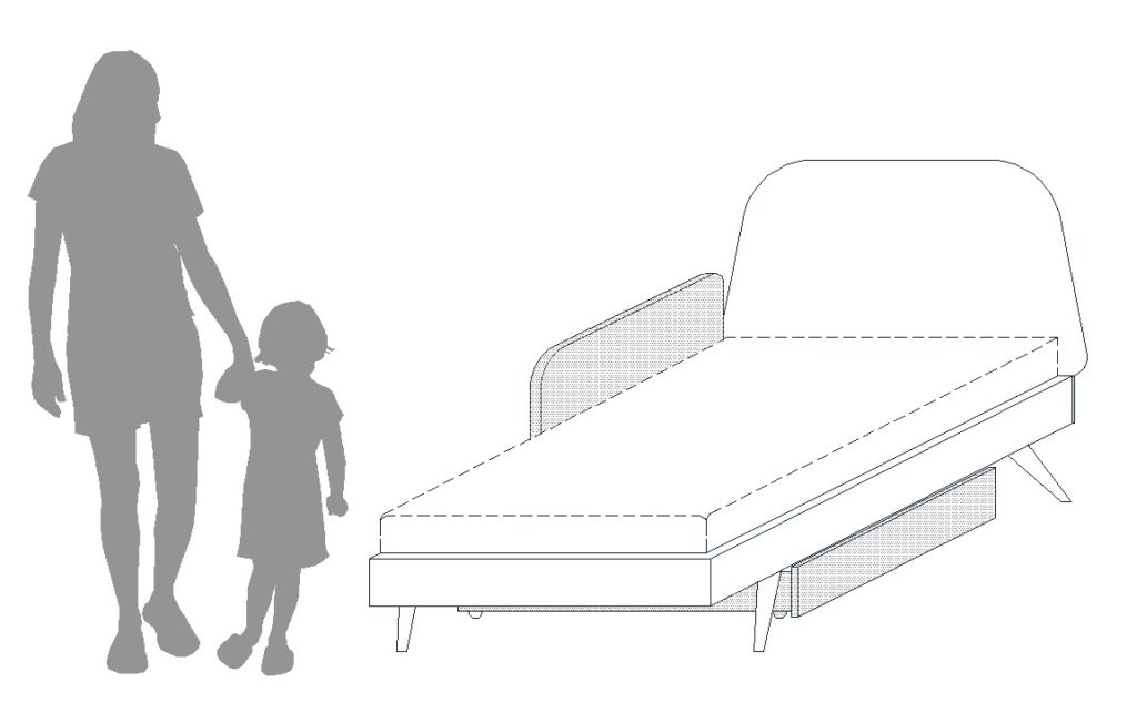 Łóżko ma nóżki wysokie na 20 cm, lekko skośne,