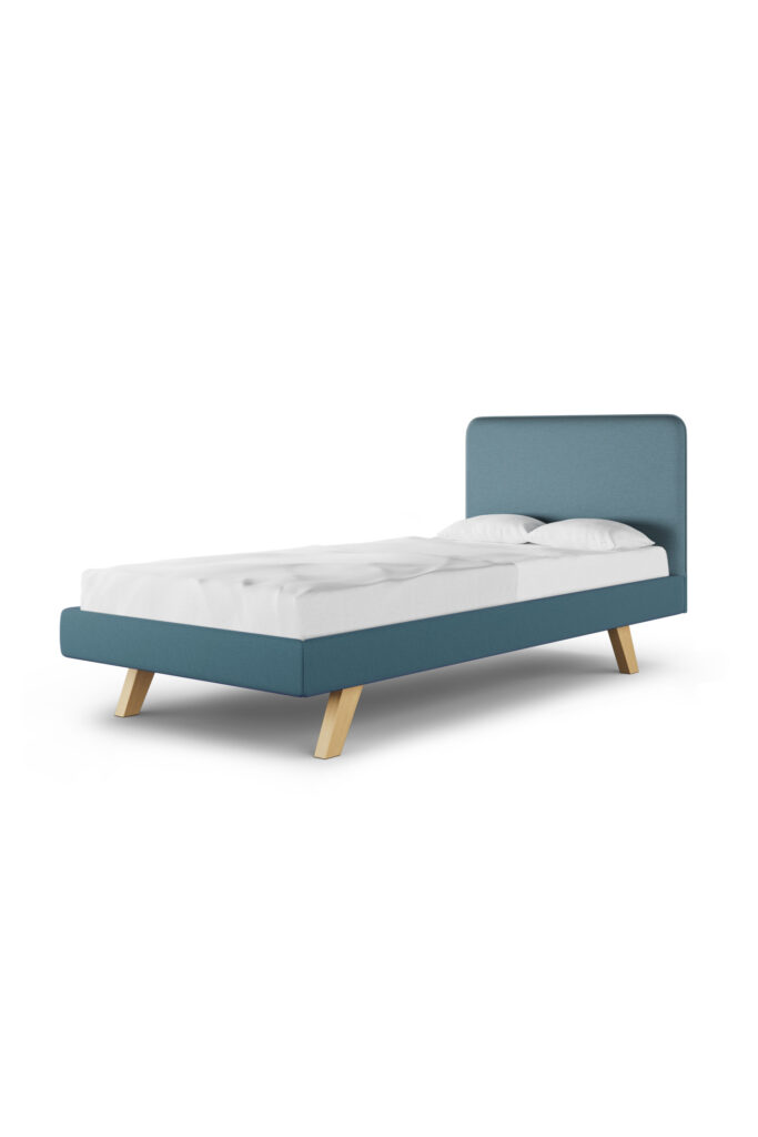 Łóżko dziecięce z manufaktury Minko składa się z solidnej podstawy, czyli stelażu na nóżkach, wykonanych z wysokiej jakości naturalnego drewna bukowego lub dębowego. Zagłówek zaś otapicerowany został przyjemnymi w dotyku i atrakcyjnymi wizualnie tkaninami, zdobi go piękna lamówka w złotym kolorze lub w odcieniu wybranego materiału. Kolor materiału możesz dowolnie wybrać z szerokiej palety barw Minko.