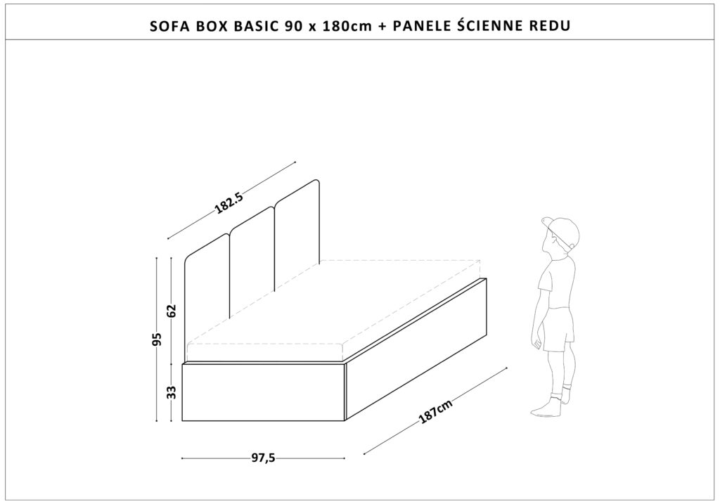 Dziecięce łóżko Sofa Box Basic z tapicerowanymi panelami ściennymi w typie dziennej sofy to piękny mebel z manufaktury Minko, który pozwoli Twojemu dziecku komfortowo odpocząć, a we wnętrzu sypialni wprowadzi przytulny, skandynawski klimat.