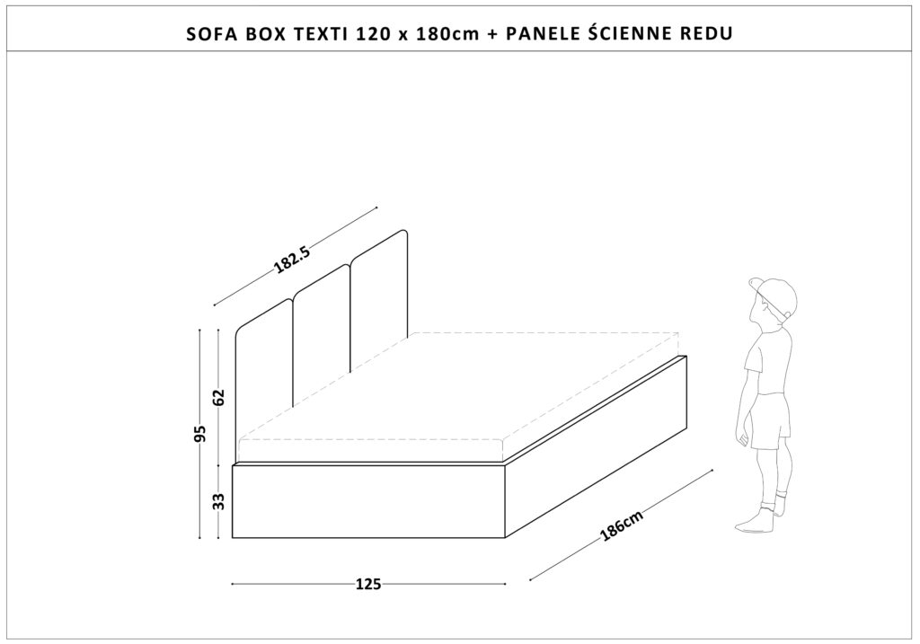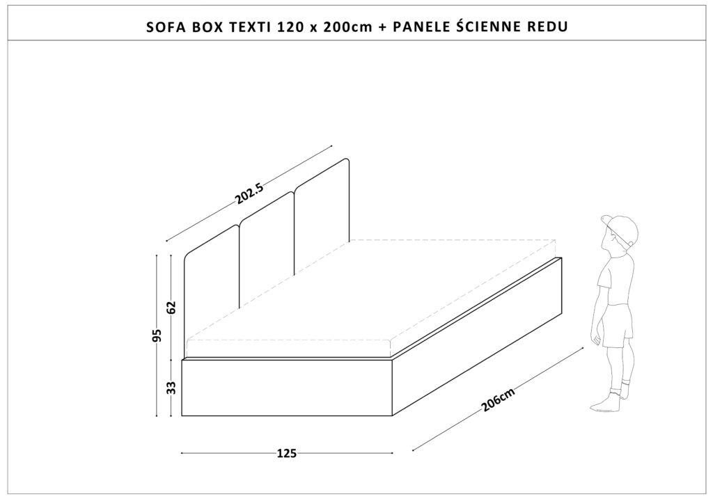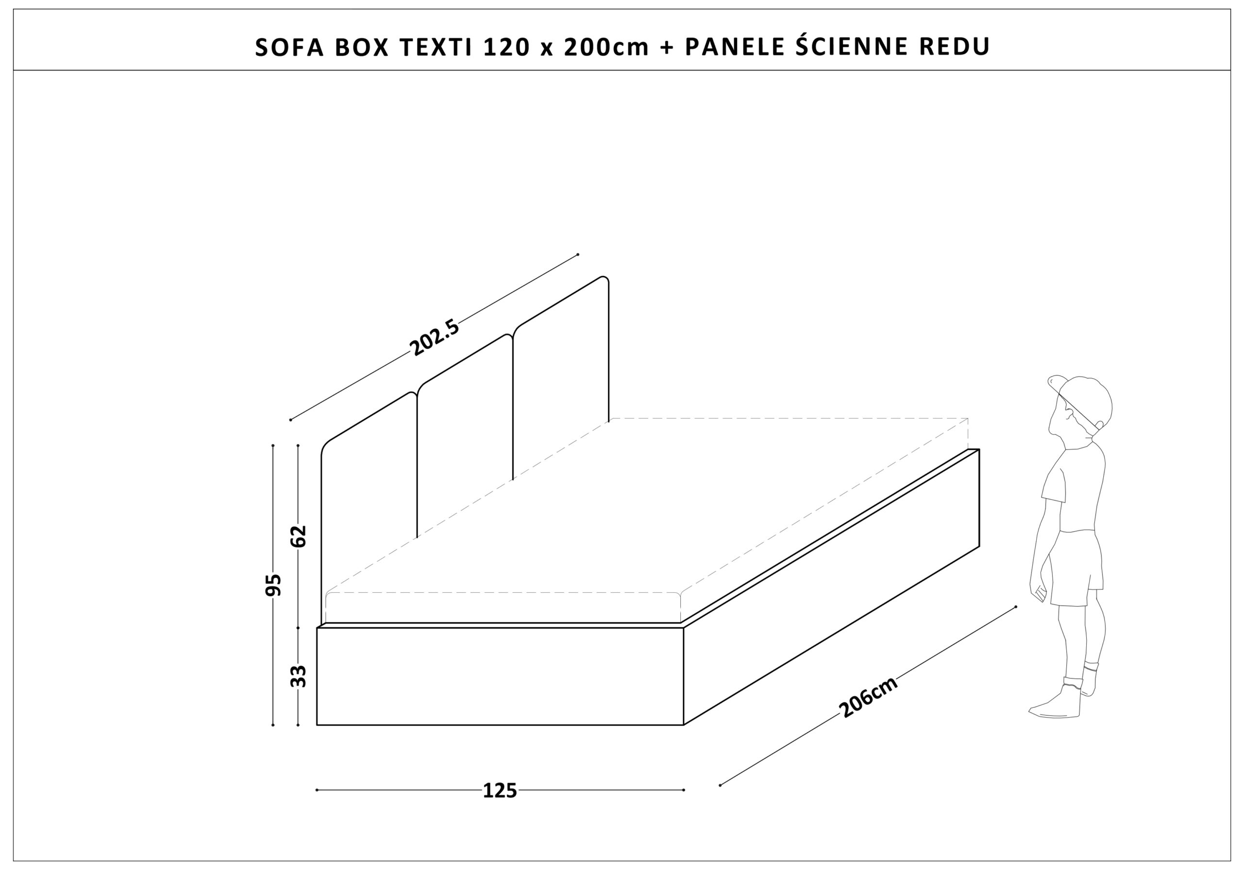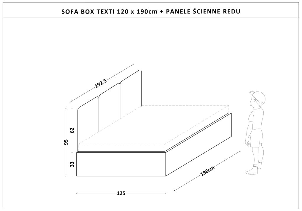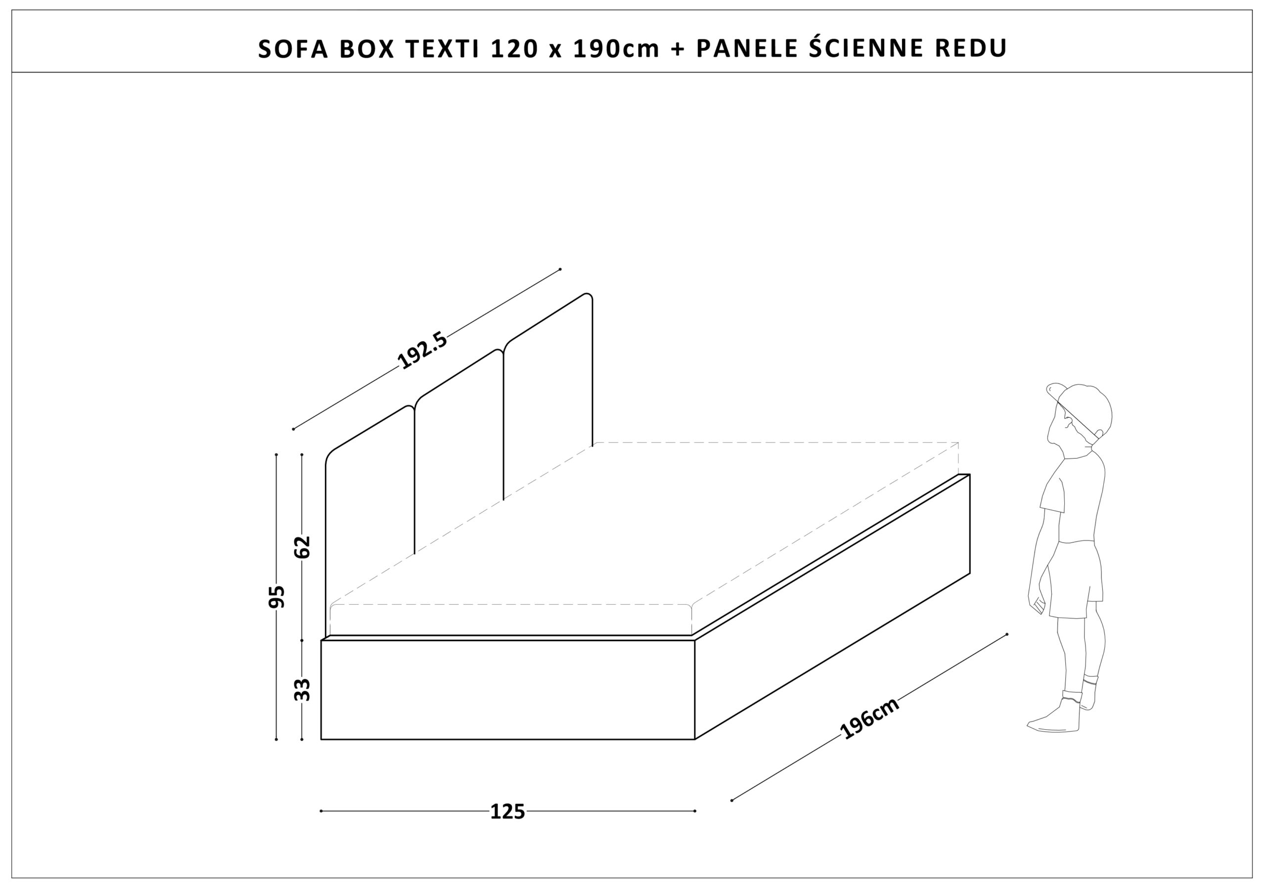 Młodzieżowe łóżko Sofa Box Texti z półokrągłymi lub prostokątnymi panelami ściennymi w typie dziennej sofy plus ogromny pojemnik do przechowywania pod materacem.