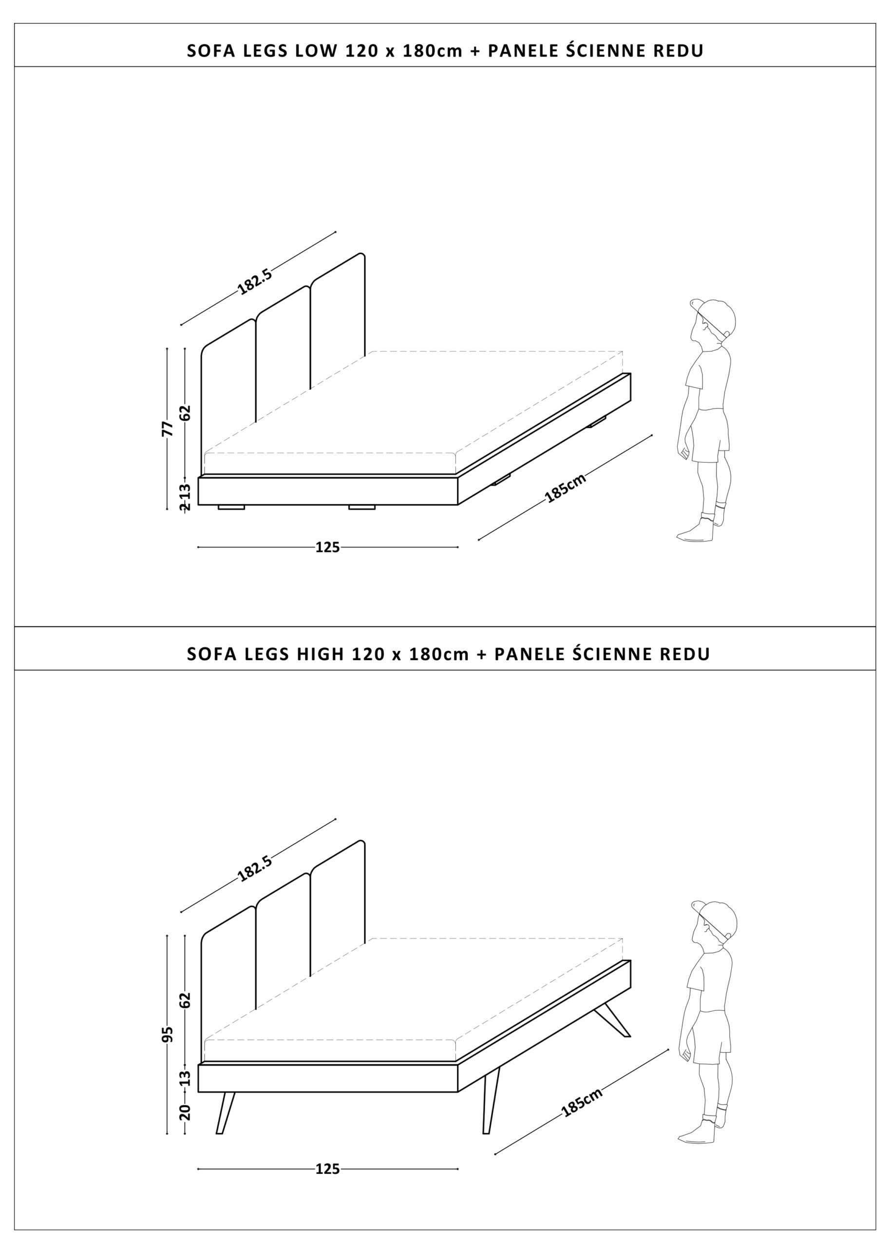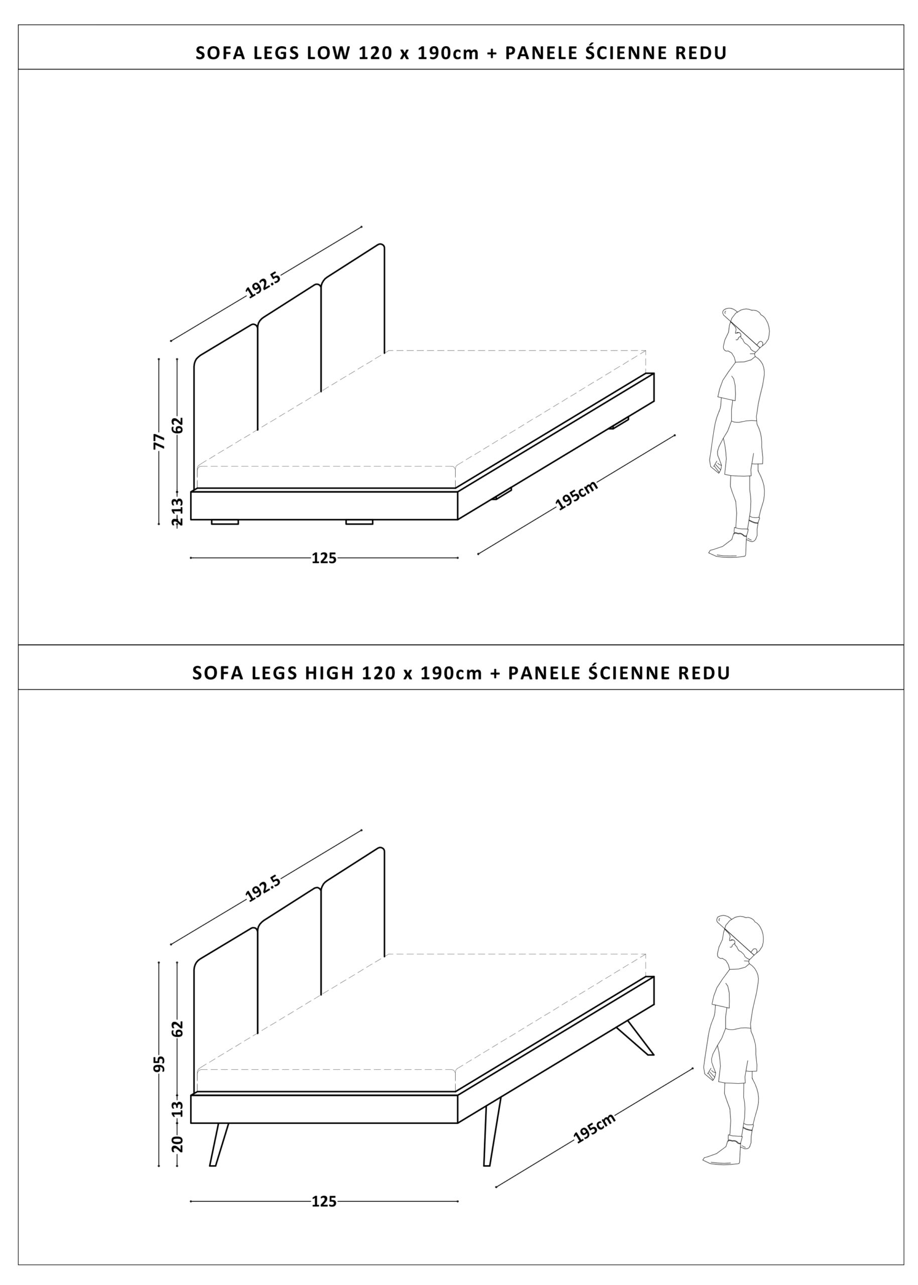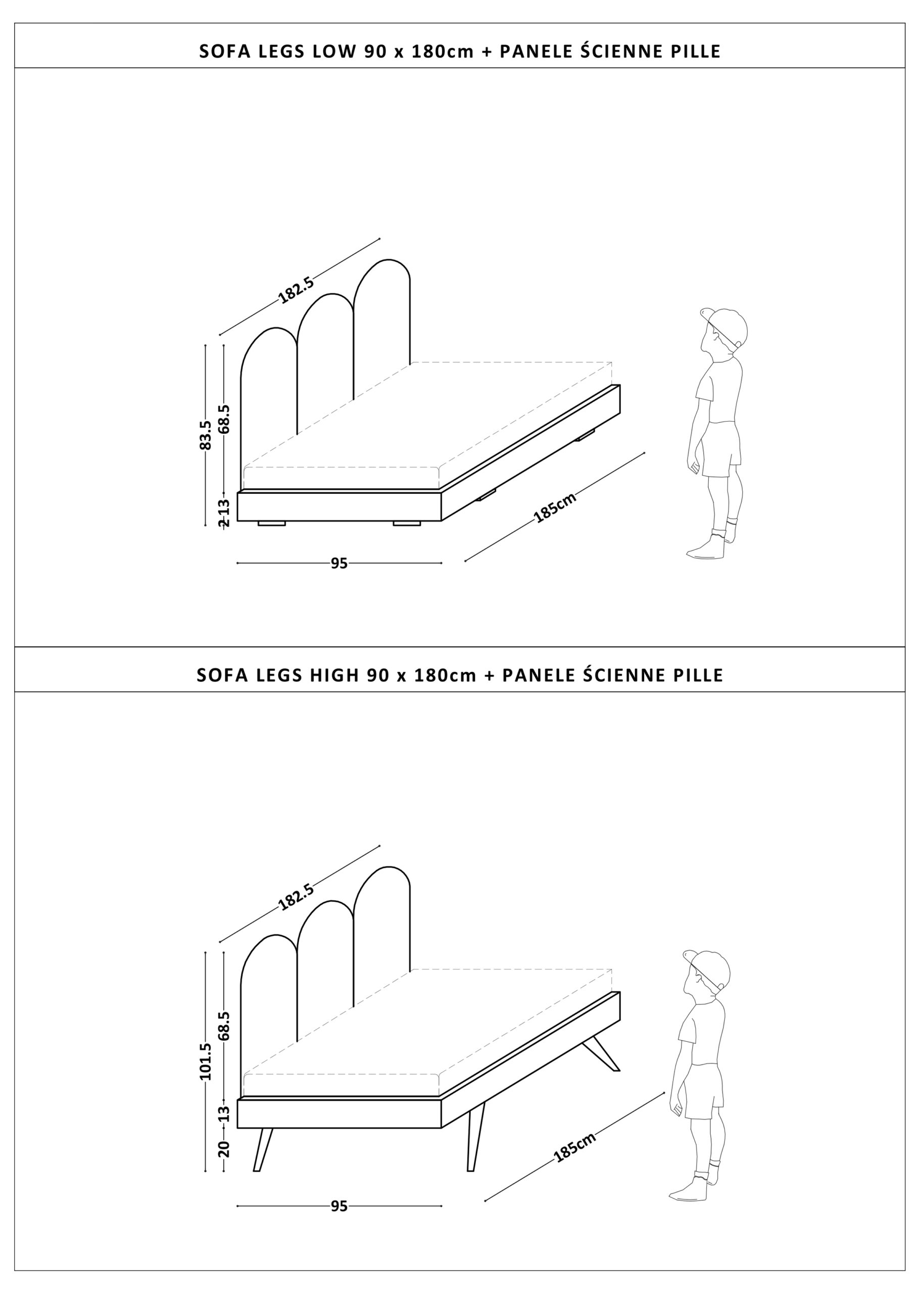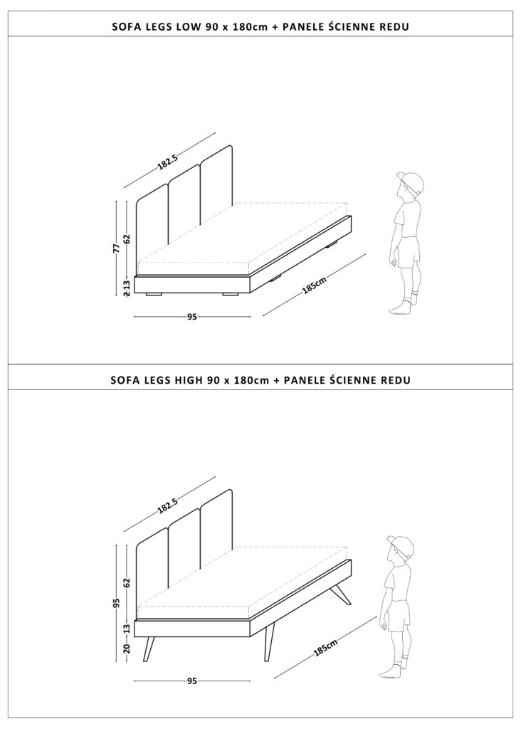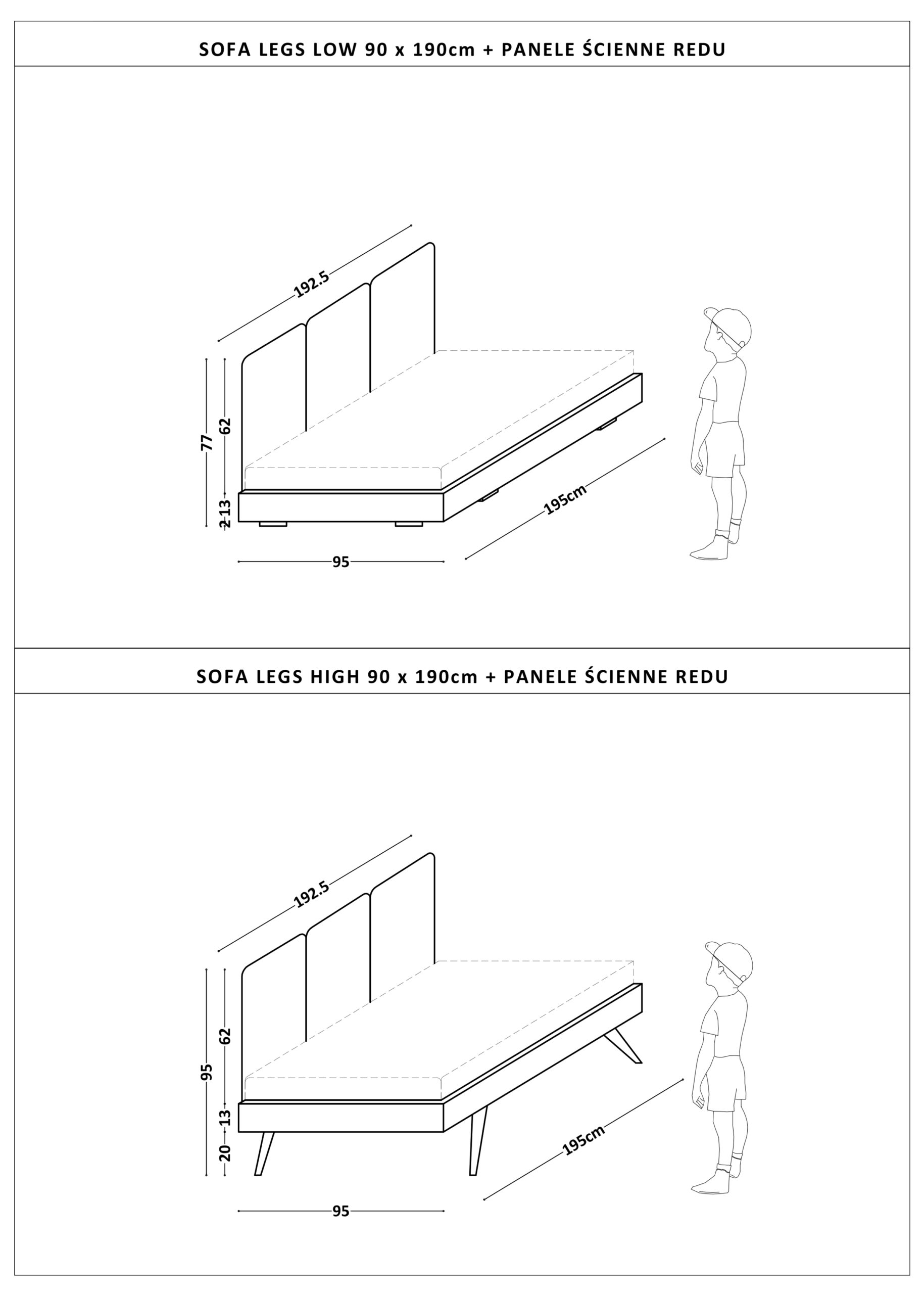 Dziecięce łóżko Sofa Legs Texti z półokrągłymi lub prostokątnymi panelami ściennymi w typie dziennej sofy to piękny mebel z manufaktury Minko, który pozwoli Twojemu dziecku komfortowo odpocząć, a we wnętrzu sypialni wprowadzi przytulny, skandynawski klimat.