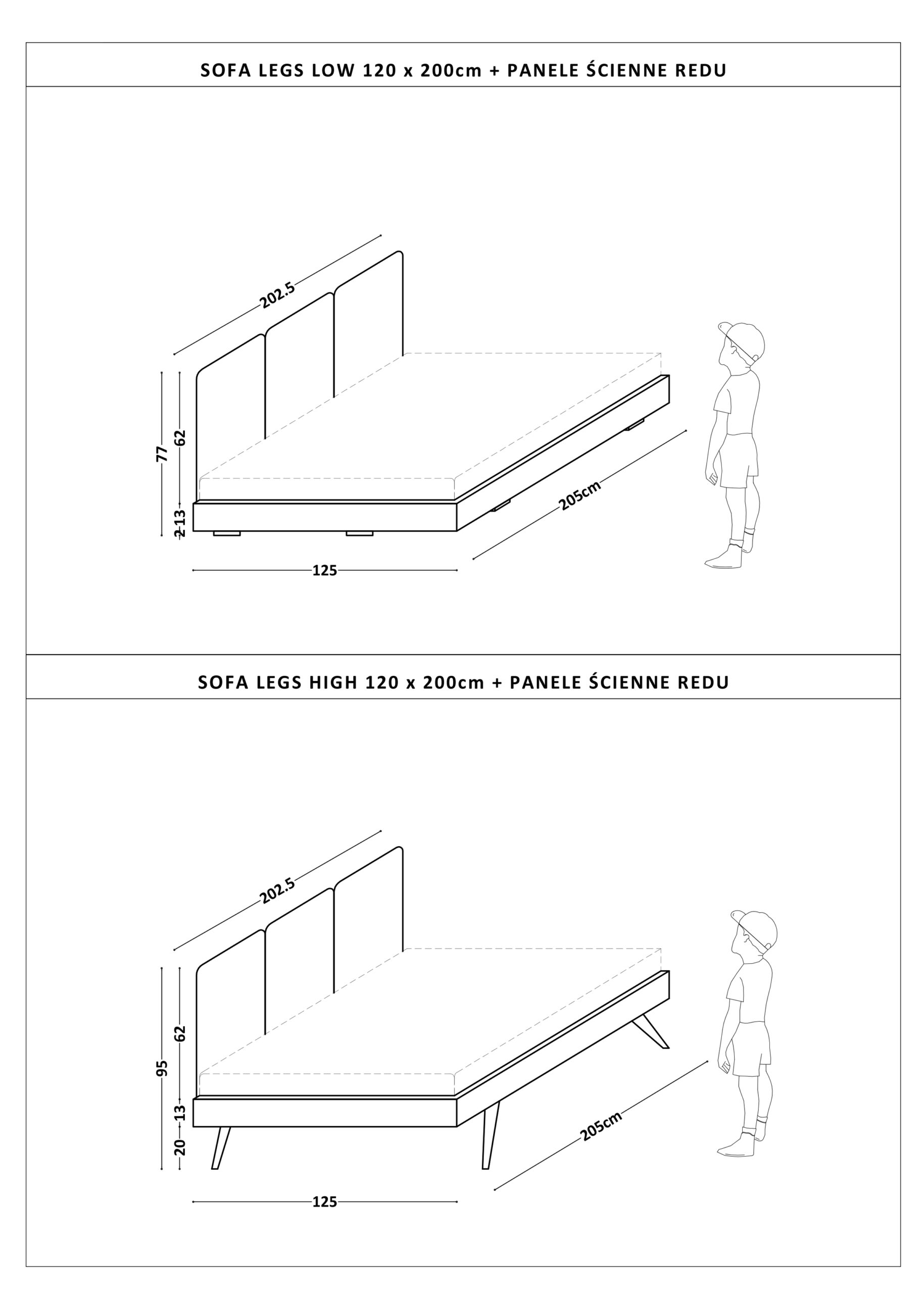 -wysokie na 20 cm, lekko skośne (wtedy można dodać szufladę pod łóżko),