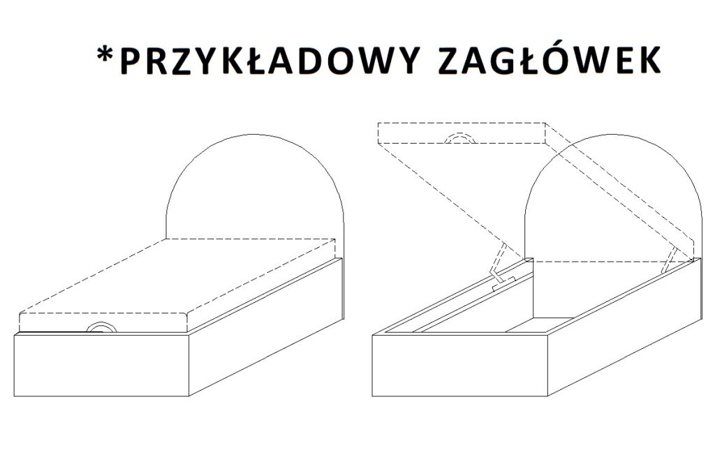 Łóżko ma pojemną skrzynię otwieraną do góry (tutaj kupujesz ramę nietapicerowaną):