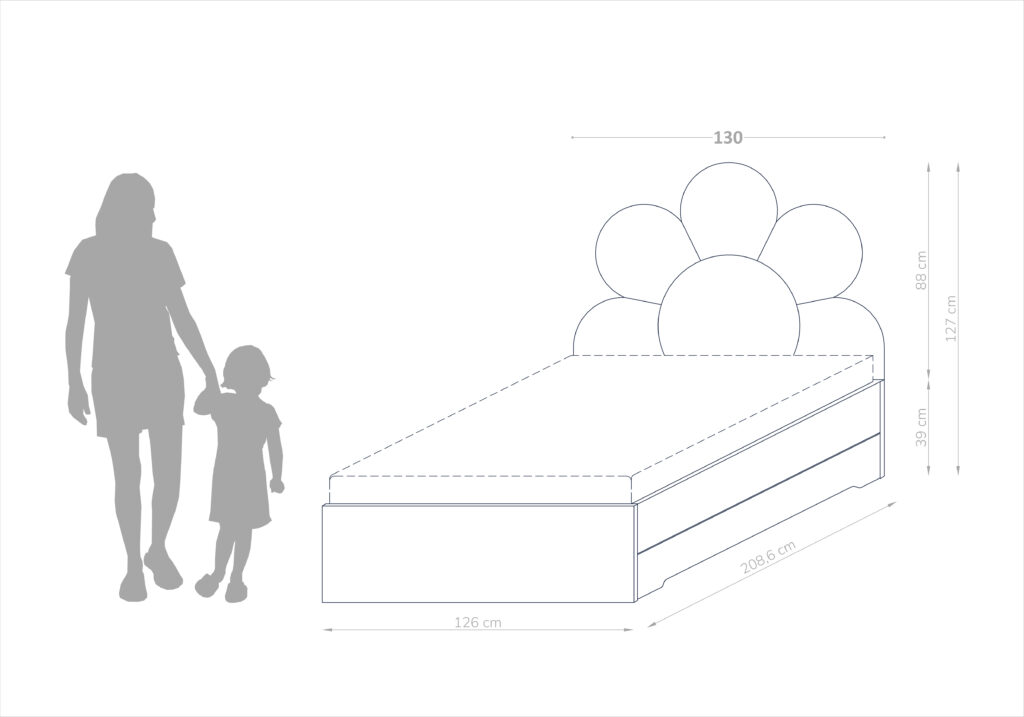 Double Bed Daisy dostępne jest w dwóch rozmiarach: