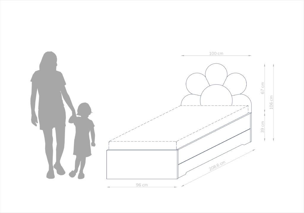 Łóżko Double Bed Daisy to połączenie praktyczności i elegancji, które zachwyci każdego rodzica poszukującego nowoczesnych rozwiązań do pokoju dziecięcego lub młodzieżowego. Dzięki wysuwanej szufladzie z możliwością umieszczenia dodatkowego materaca, to łóżko sprawdzi się jako idealne łóżko dla rodzeństwa, dwójki dzieci lub jako zapewnienie dodatkowego miejsca do spania dla gości.