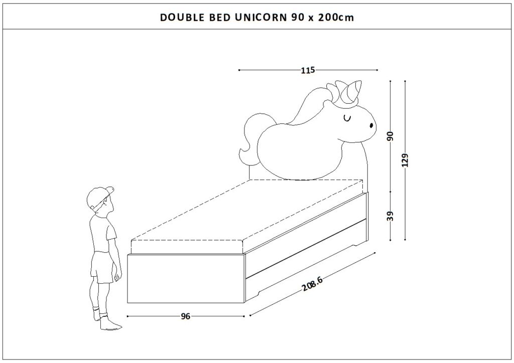 Łóżko z podwójnym spaniem DOUBLE BED jednorożec Unicorn