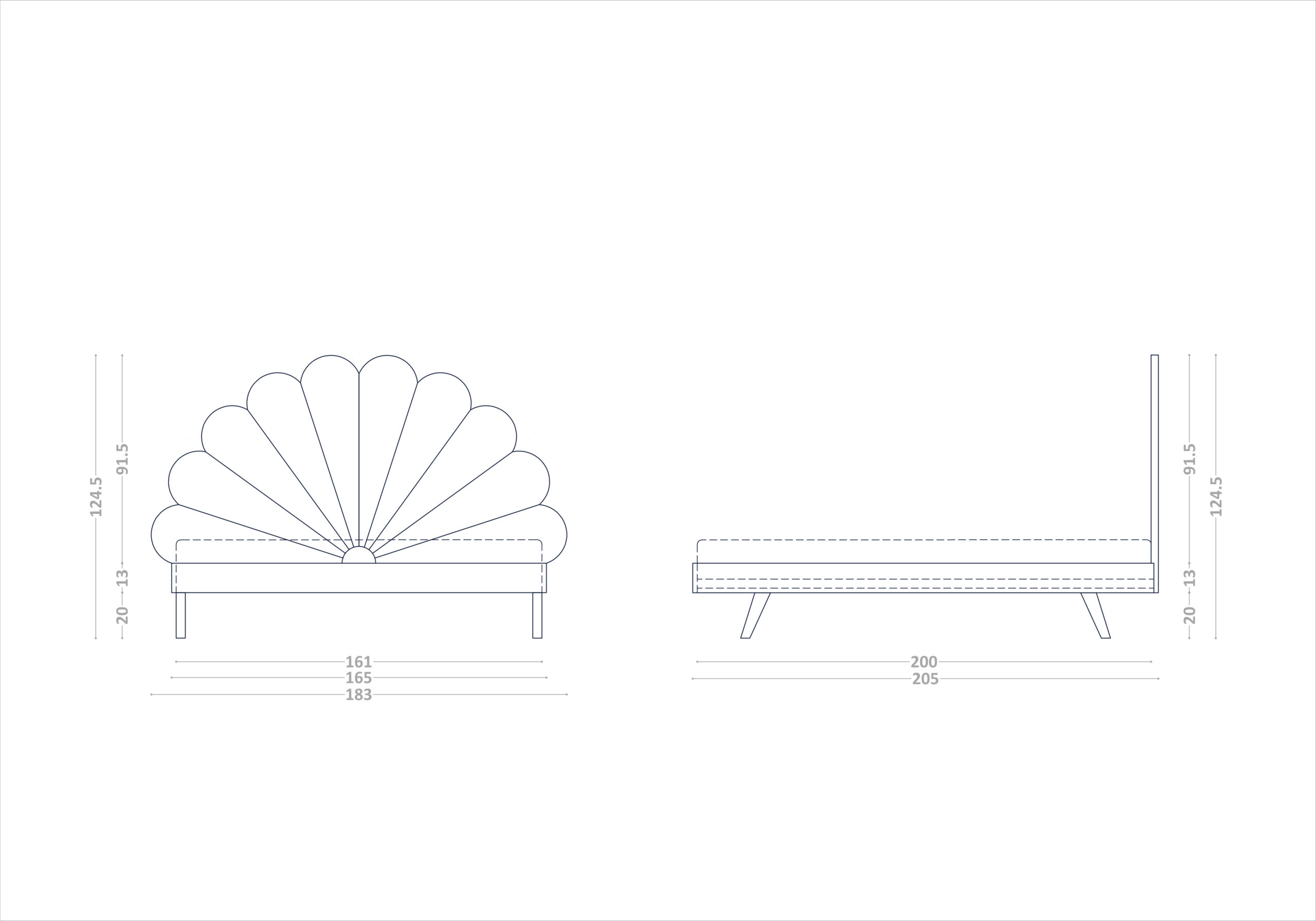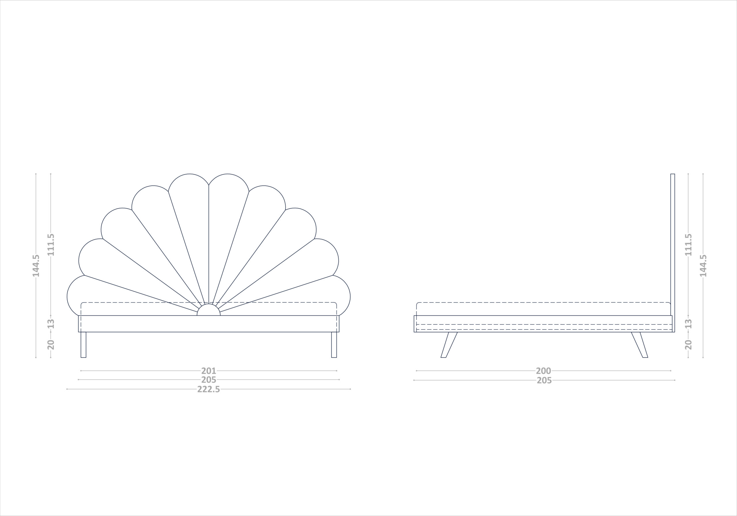 Nasze łóżko z tapicerowanym zagłówkiem w kształcie kwiatu zostało usadowione na stabilnej ramie, opartej na eleganckich i klasycznych drewnianych nogach.