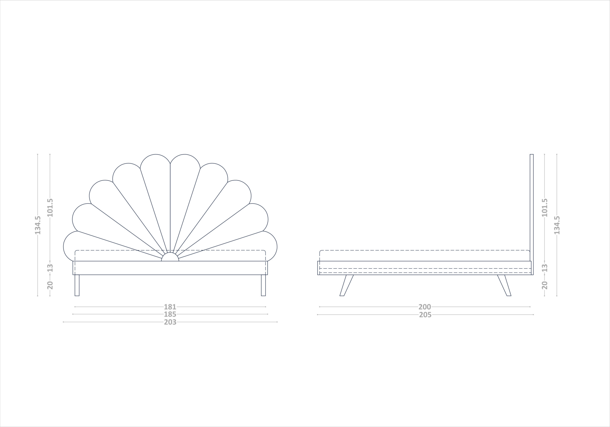 Tył tapicerowanego zagłówka jest wykończony czarną lub białą tkaniną tapicerską, dlatego sugerujemy ustawienie łóżka zagłówkiem do ściany (jeśli potrzebujesz pełnego tapicerowania, daj nam znać!).