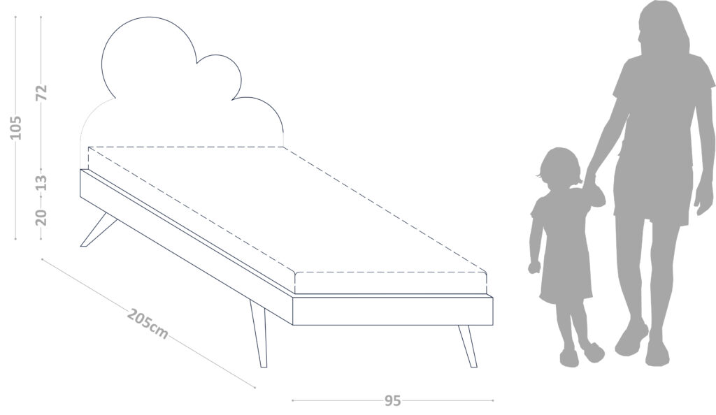 Łóżko dziecięce z niebieskim, tapicerowanym zagłówkiem w kształcie chmurki jest idealne zarówno dla dziewczynki, jak i chłopca. Solidna, drewniana konstrukcja ramy łóżka zapewni bezpieczeństwo podczas zabawy i snu, a mięciutkie obicie ramy i zagłówka stworzy przytulny klimat w dziecięcym pokoju.