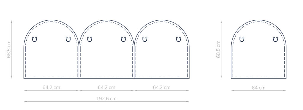 Podane wymiary są przybliżone i dopasowane do wysokości zagłówka w łóżku Pille oraz Tęcza.