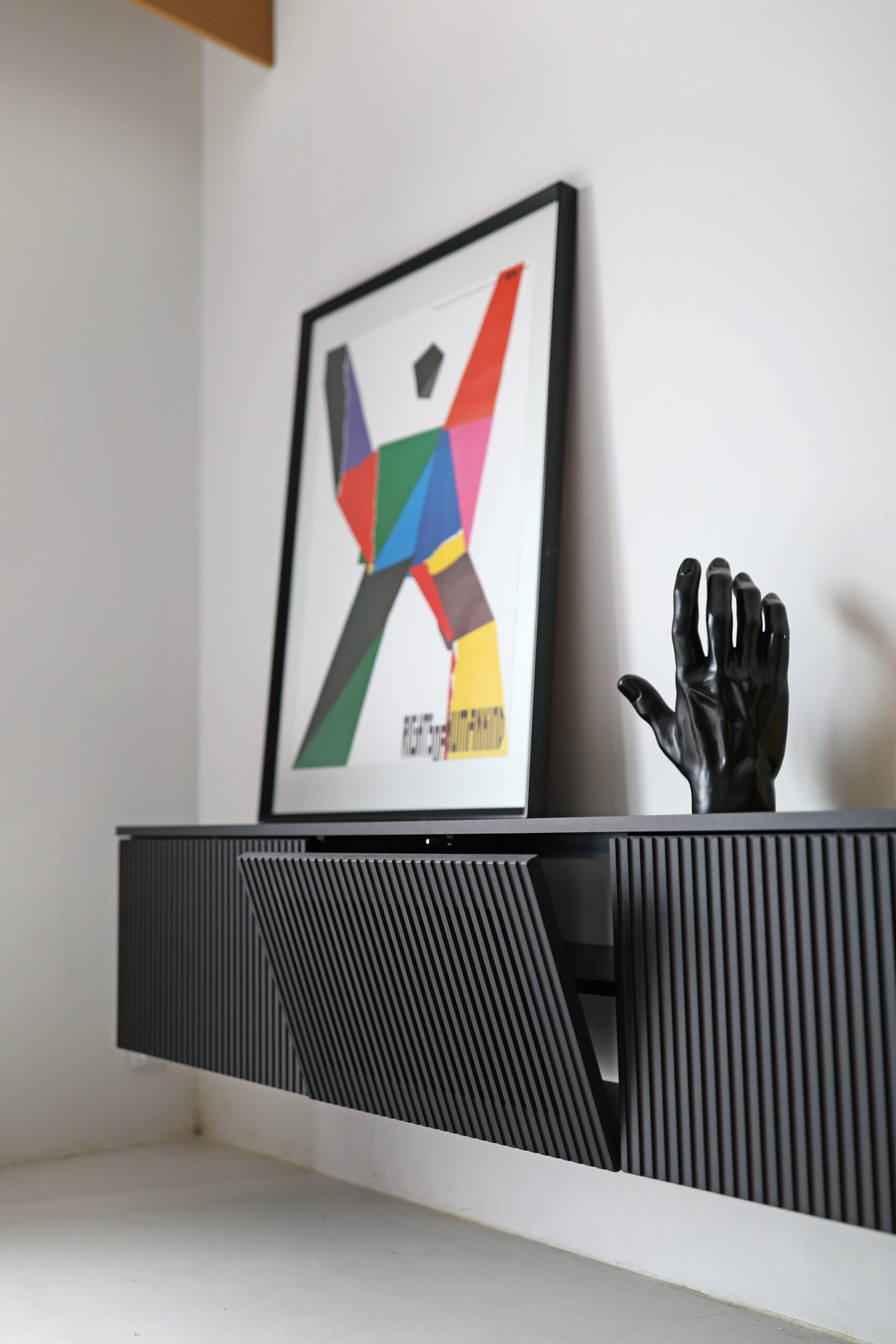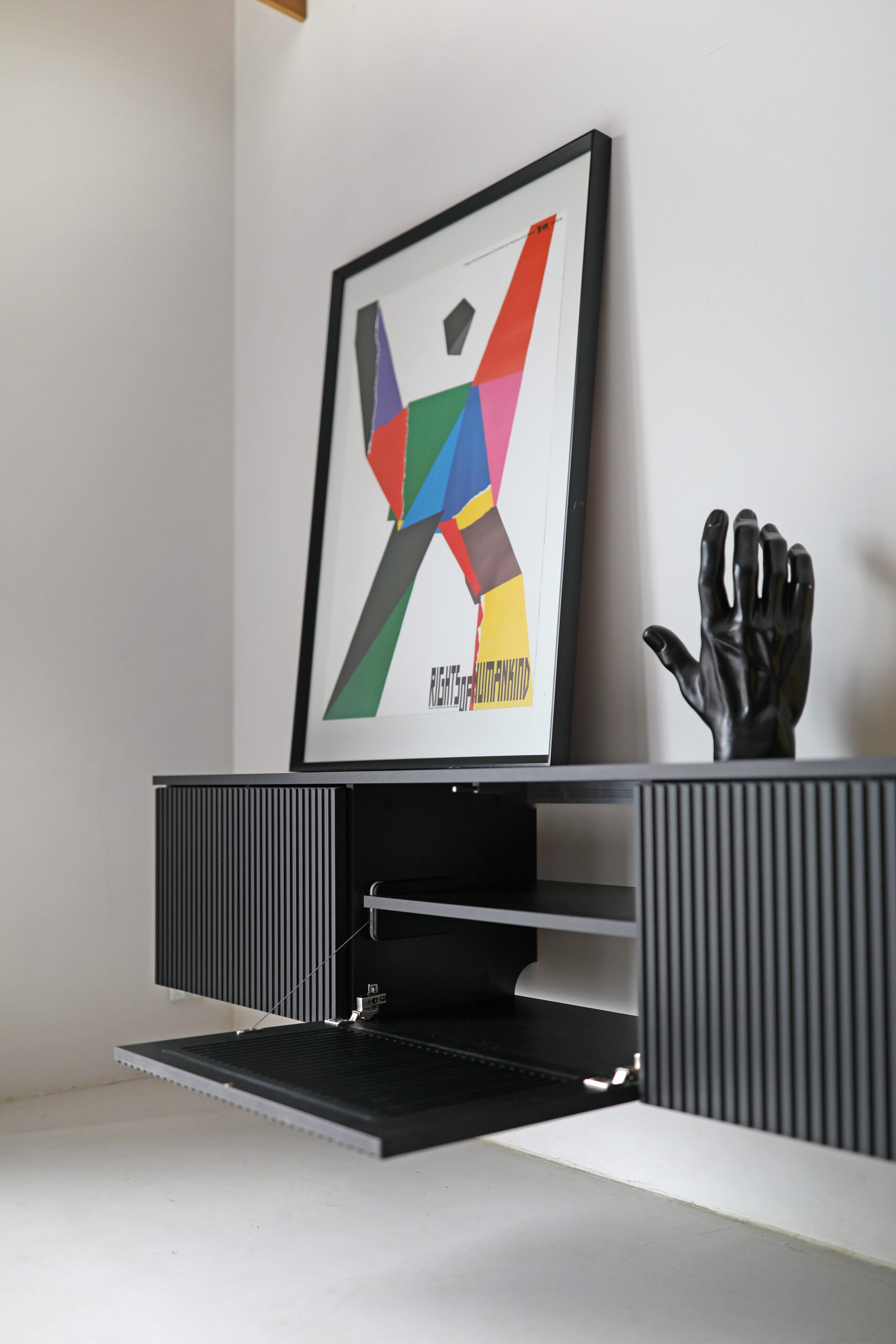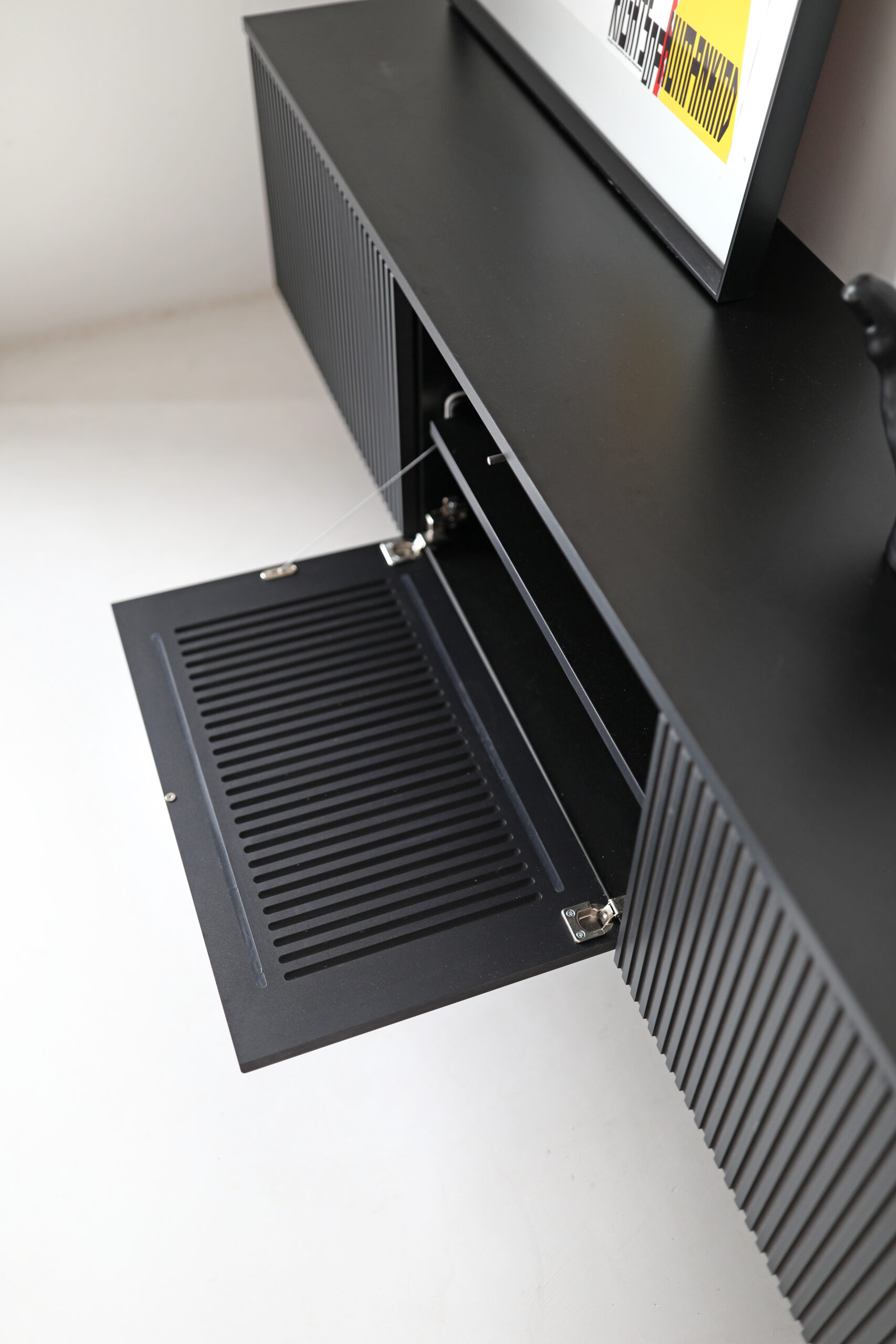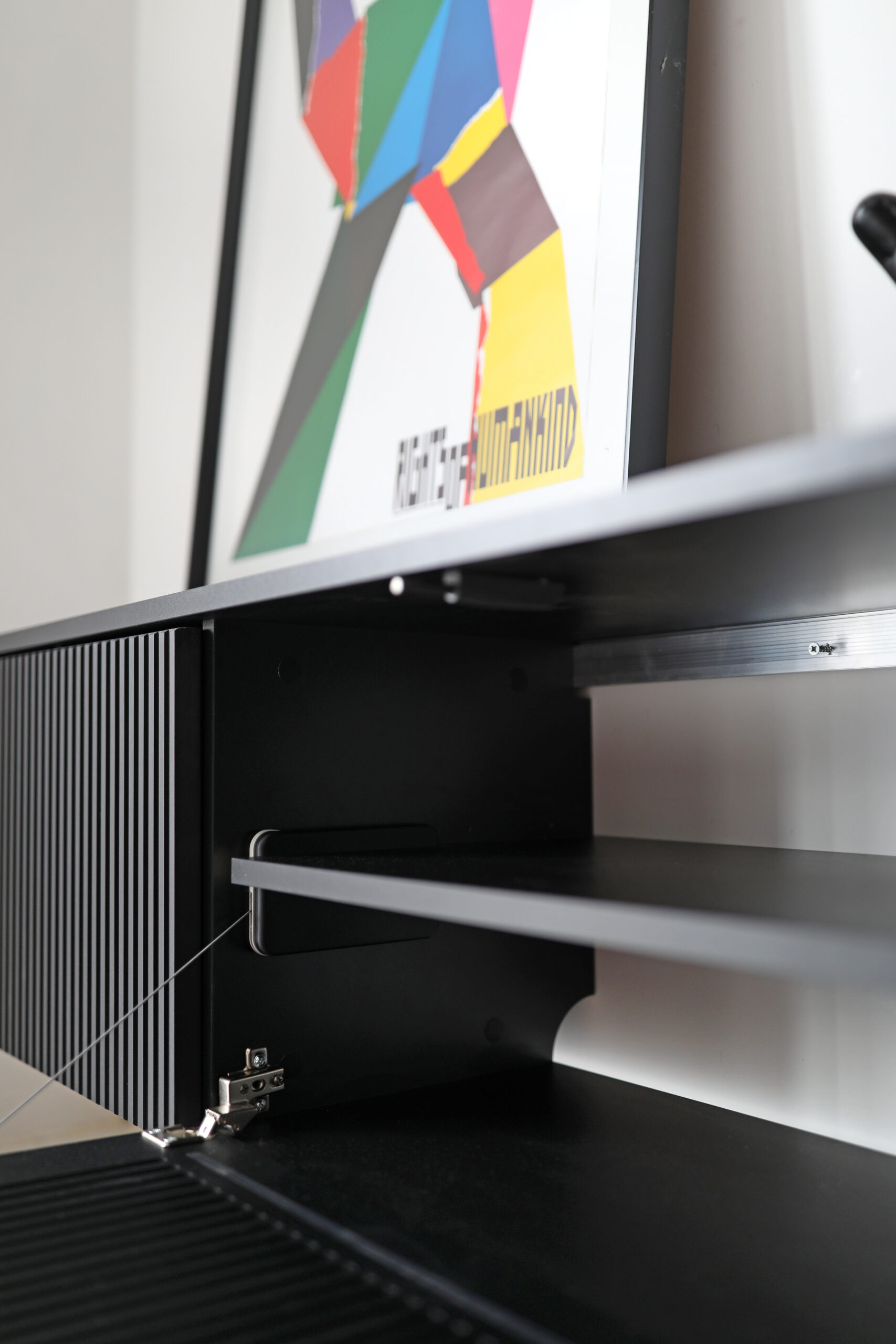 Poniżej zdjęcie obrazujące czarne elementy (na zdjęciu widoczna jest szafka RTV LINE z szufladą).