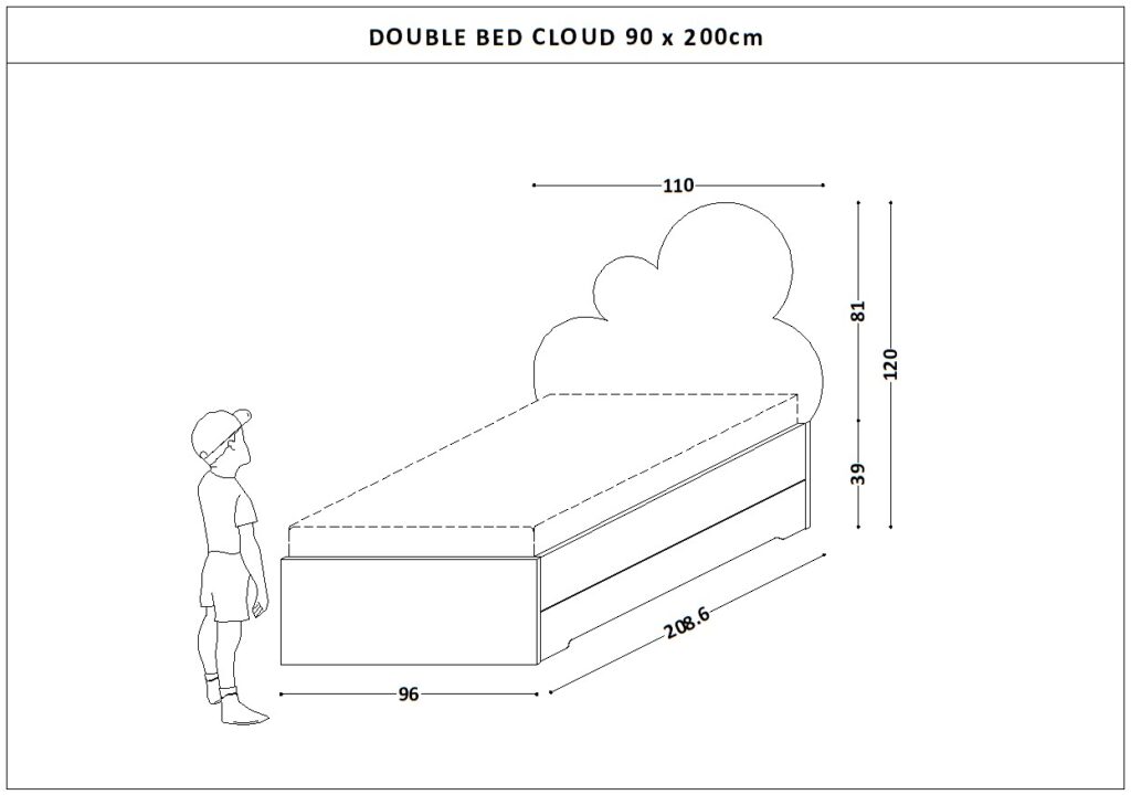 Podwójne Łóżko Double Bed z zagłówkiem w kształcie Chmurki.