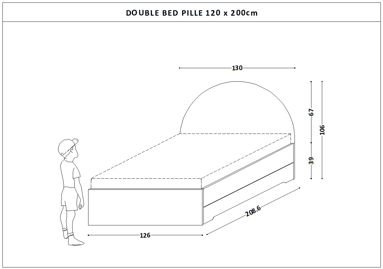Podwójne Łóżko Double Bed z zagłówkiem w kształcie Półokręgu.