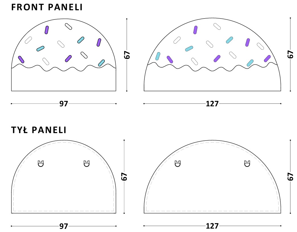 Tapicerowany zagłówek  jak słodki deser z kolorową posypką. Może służyć jako zagłówek do dowolnego łóżka lub jako niezależny panel ścienny.